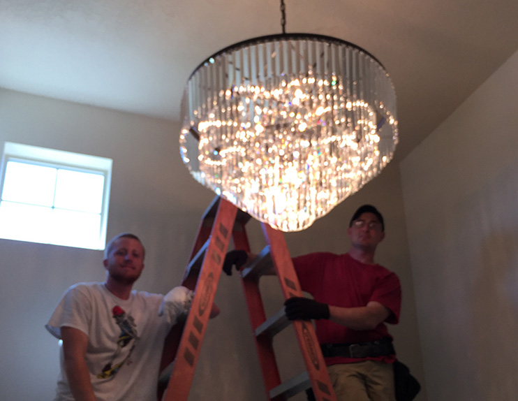We installed LED can lighting and pendant lighting to complete this beautiful kitchen remodel.
